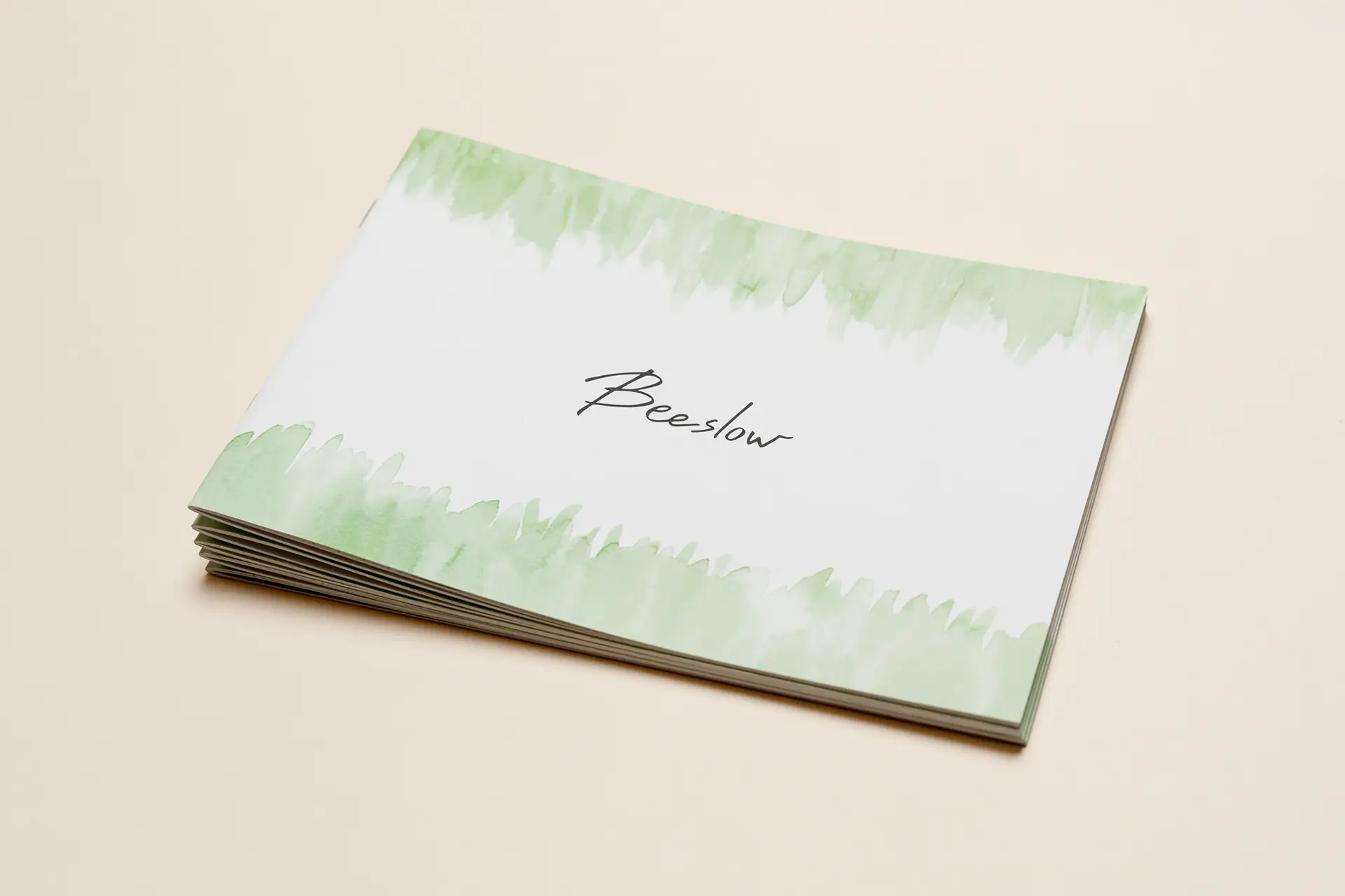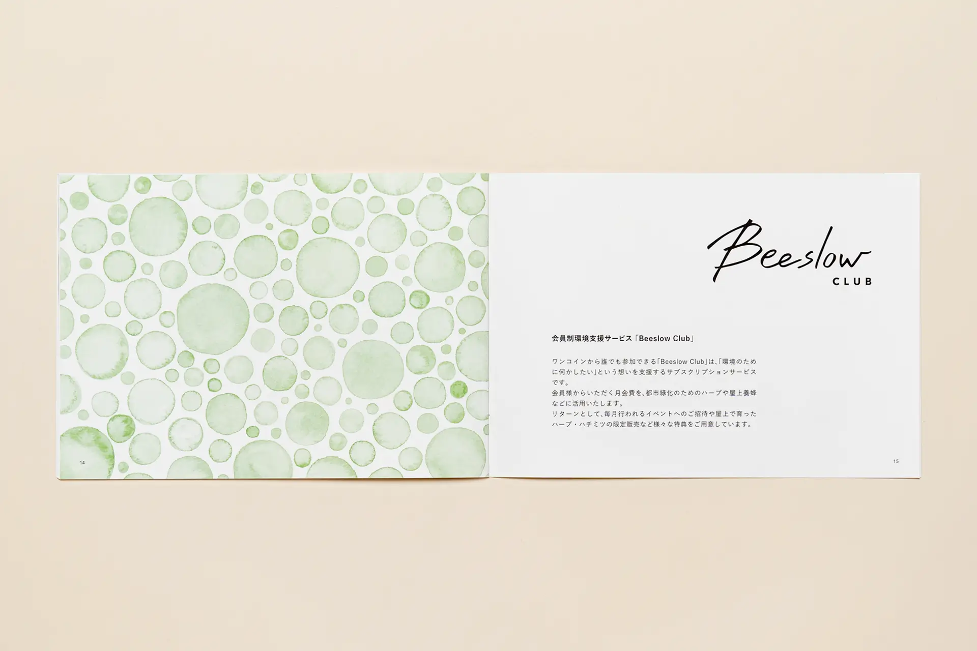 東京を拠点に、都市養蜂と屋上緑化の活動を行う株式会社Beeslowのロゴ、名刺、パンフレットなどを制作しました。